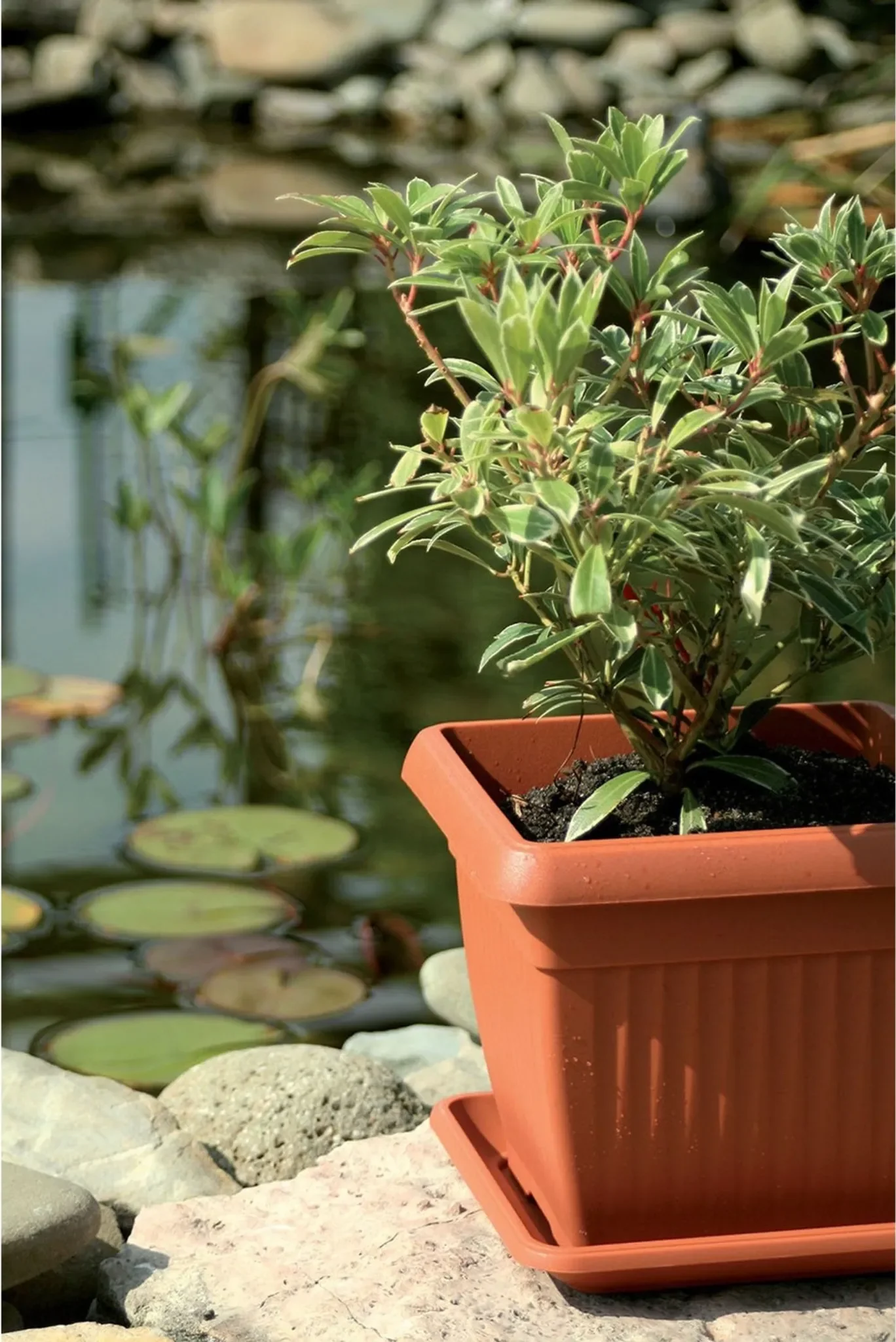 Botle – Blumenkübel mit Untersetzer, quadratisch 24 cm, Terrakotta-Optik