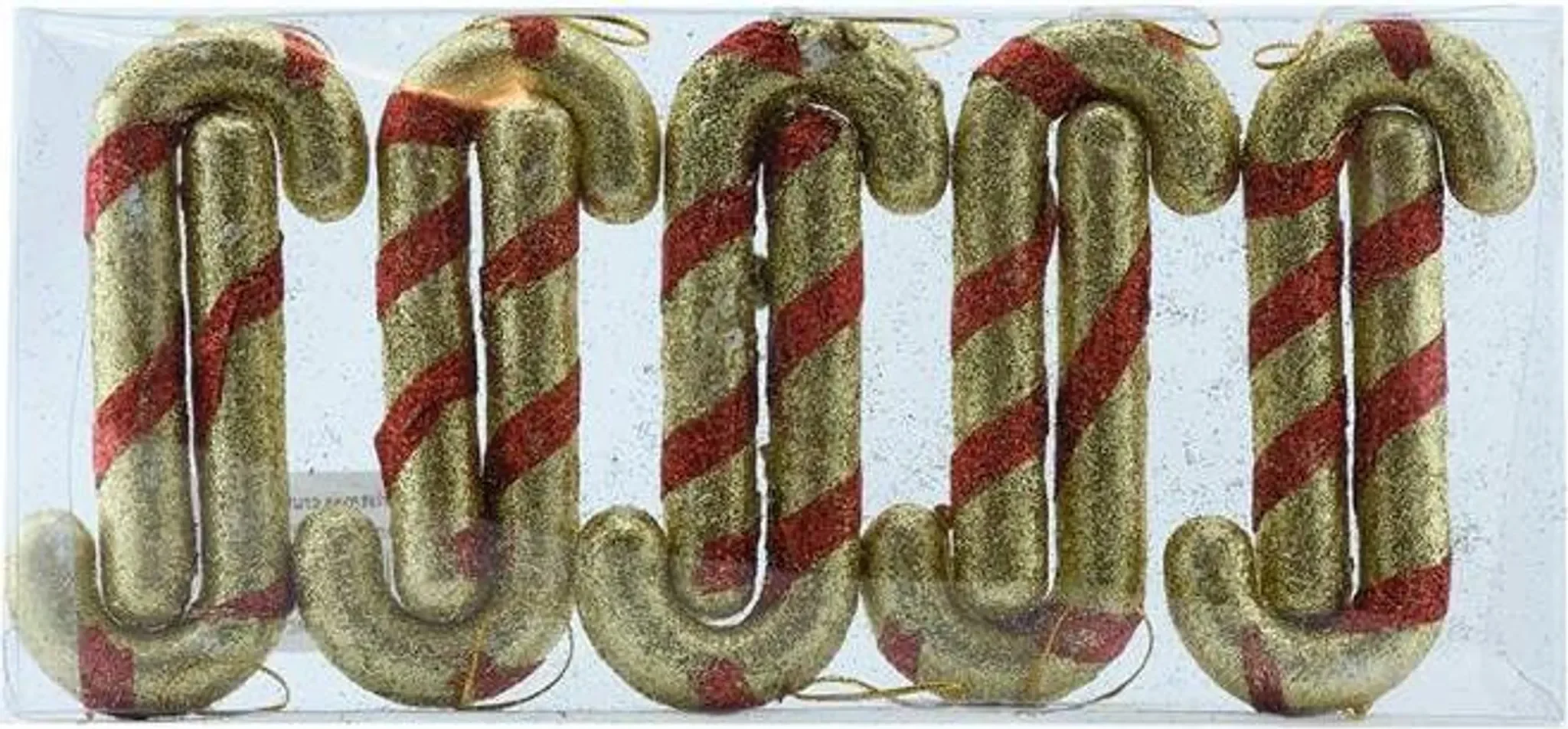 Dieses Set dekorativer „Lollipop“-Krücken in Gold-Rot eignet sich hervorragend für weihnachtliche Arrangements, Geschenkverpackungen, Adventskalender oder Tischdekorationen. Die Oberfläche ist nicht klebend und dadurch angenehm in der Anwendung.