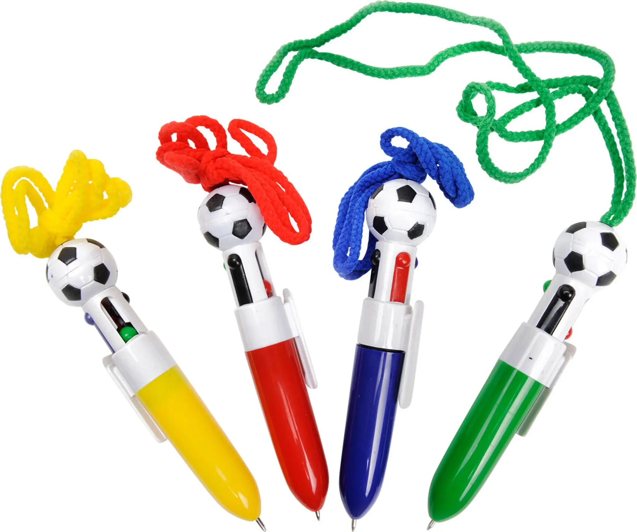 Produktinformationen "Duckiez – Mehrfarbenkugelschreiber „Fußball“ mit Umhängeband"
