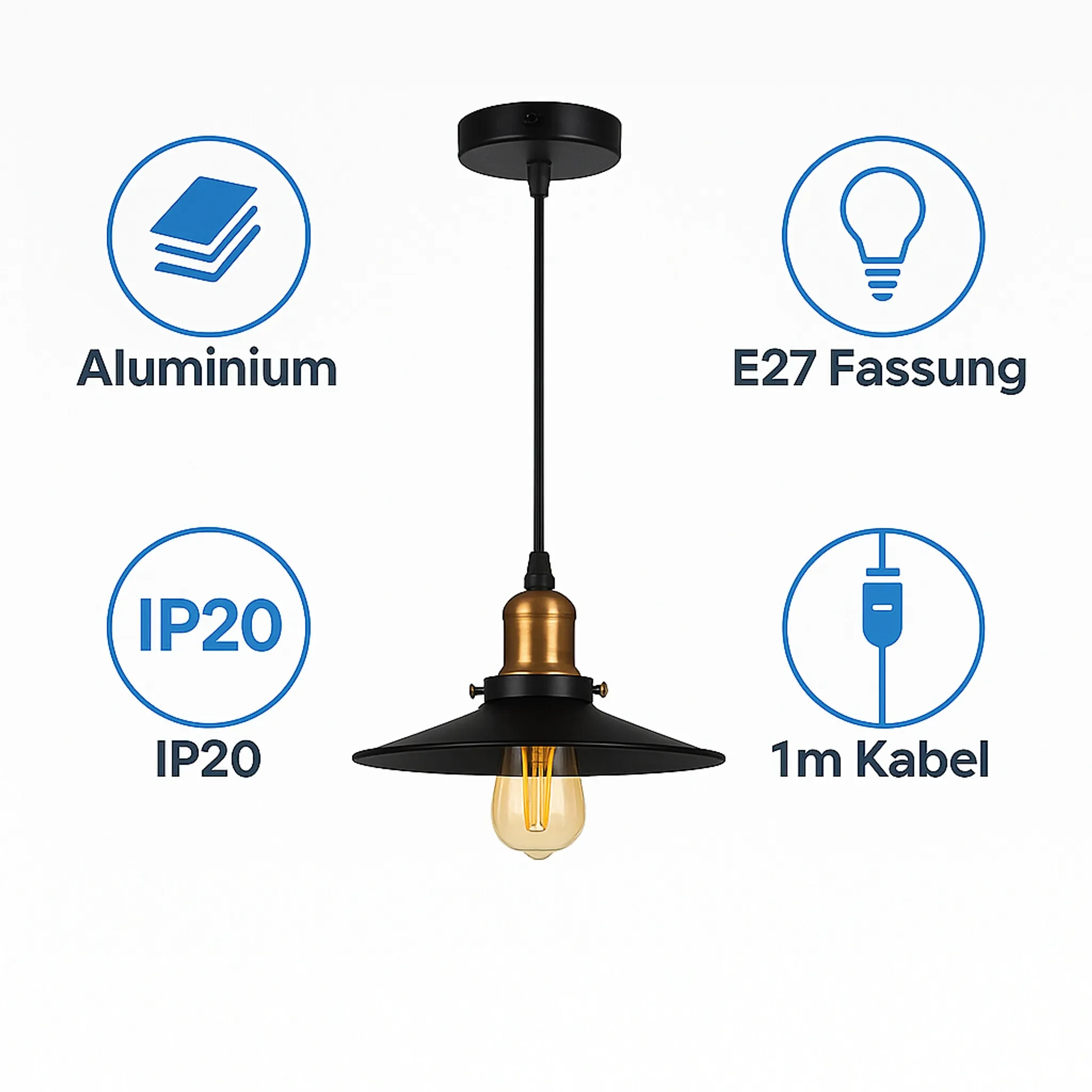 MasterLED Pendelleuchte Loft – E27 – Schwarz/Gold – Aluminium – Retro/Vintage