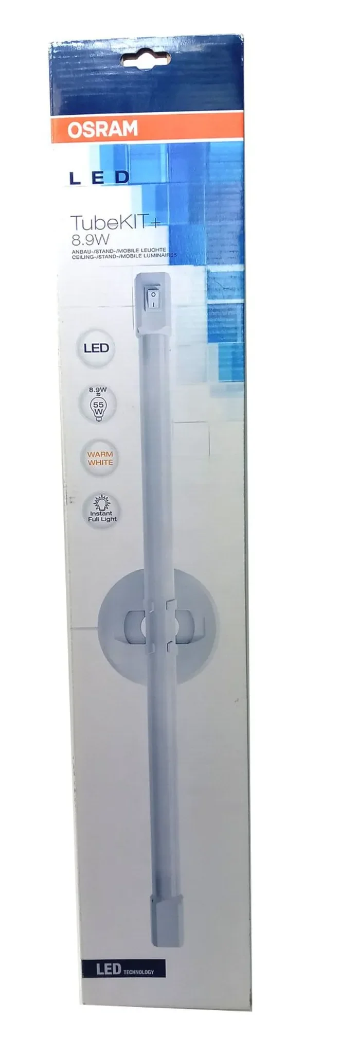 Die OSRAM TubeKIT+ ist eine vielseitige LED-Unterbauleuchte für den Innenbereich, die sich dank Plug & Play-System, integriertem Schalter und EU-Stecker besonders unkompliziert montieren und nutzen lässt. Die warmweiße Lichtfarbe mit 3000 K sorgt für ein angenehmes, nicht blendendes Licht.